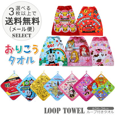 【3枚以上で送料無料】おりこうタオル ループ付きハンドタオル ハンドタオル エプロン おてふきタオル カーズトーマス ポケモン ピカチュウ ミニー プリンセス トイストーリー ディズニー おでかけエプロン 入園 保育園 幼児